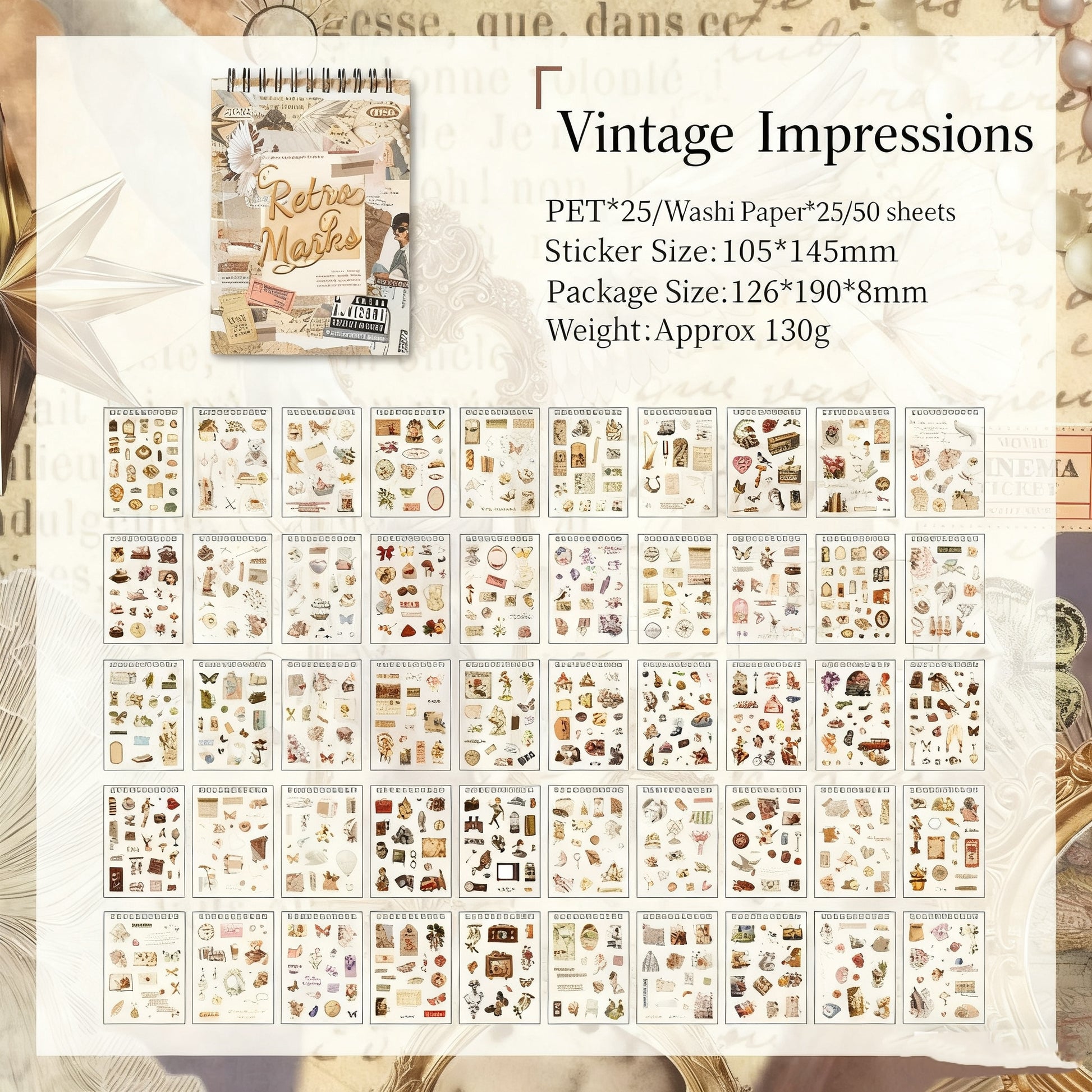 Adéntrate en un mundo de encanto vintage con nuestro Libro de Pegatinas Retro Clásicas. Esta colección es un tesoro para las almas creativas, repleta de 50 hojas únicas con motivos elegantes, patrones antiguos y recuerdos nostálgicos. Además, combina a la perfección la durabilidad del PET impermeable con la auténtica textura del papel washi, ofreciéndote una versatilidad inigualable para tus proyectos.