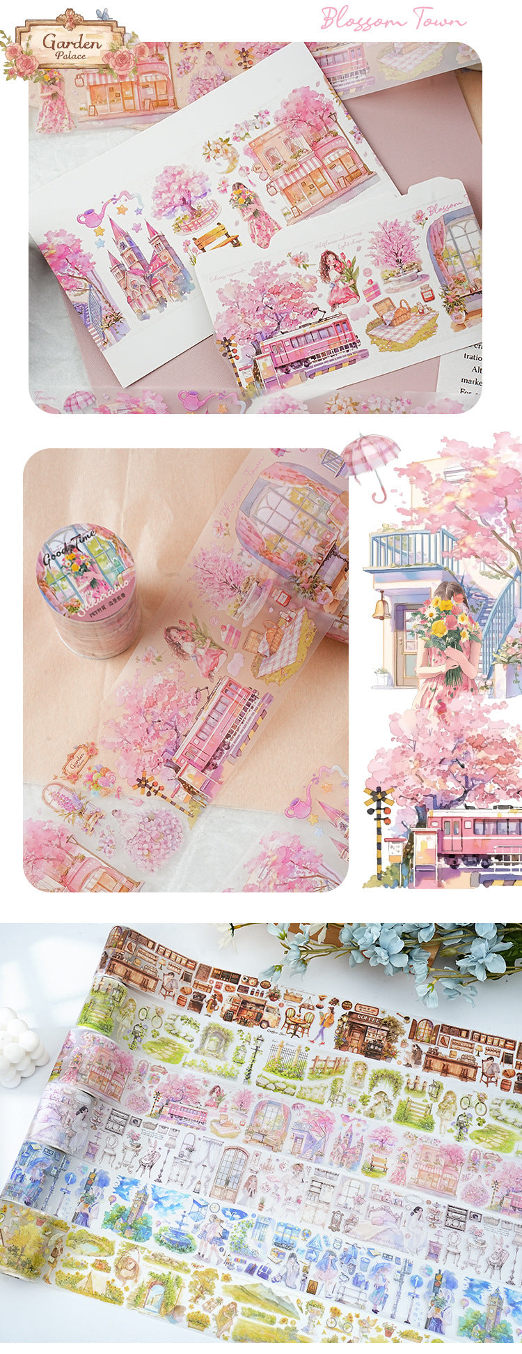 - Bring beautiful landscapes to your crafts with this Beautiful Time Scenery Washi Tape! Each roll features lovely nature views in coordinated color themes. Moreover, you can choose from pink, blue, brown and other color schemes. Therefore, your journal tape projects always look harmonious and beautiful.