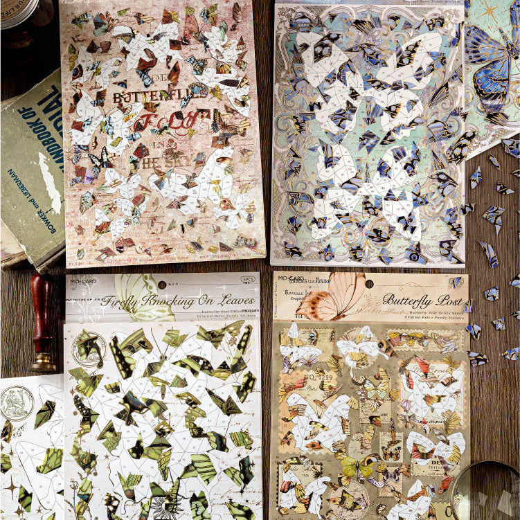 - Discover the magic of this unique sticker puzzles set! Each piece features beautiful butterfly designs with golden foil details. Moreover, these premium PET stickers form a complete butterfly jigsaw puzzle. Therefore, you can create stunning golden artwork step by step.