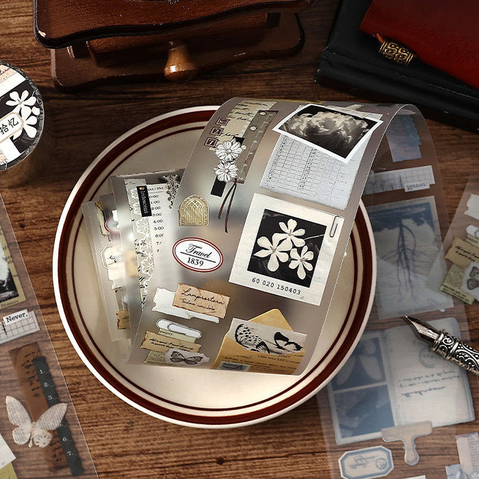- Add artistic charm to your pages with this matte PET journaling tape! Its delicate patterns feature minimalist vintage photography elements. Moreover, you'll discover film strips and elegant frames in the designs. Therefore, your journal instantly gains poetic sophistication.