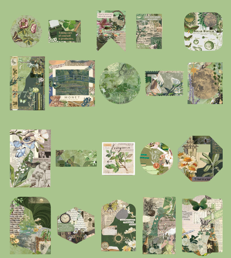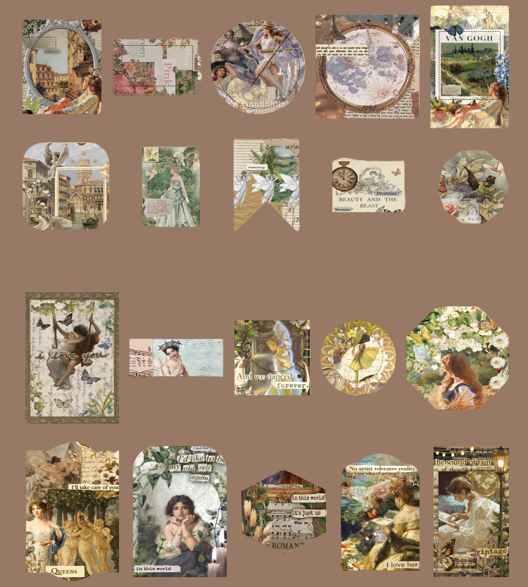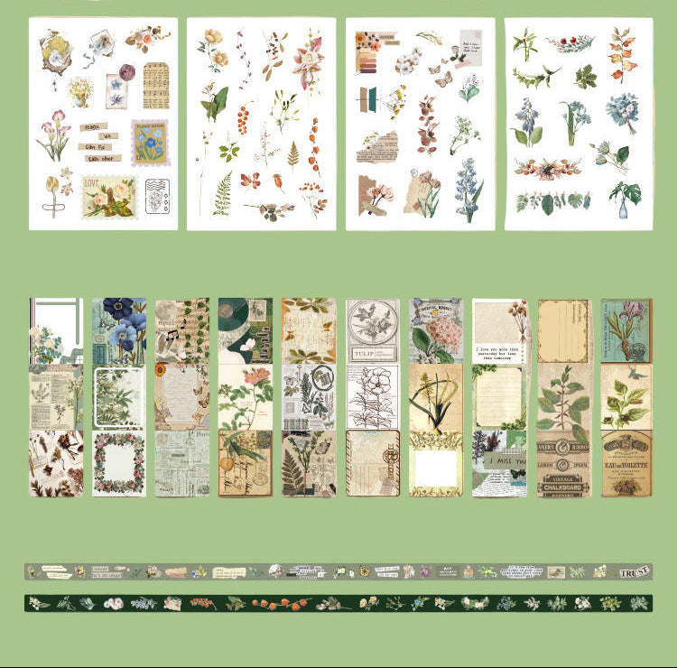- This set makes perfect christmas gift boxes for journal lovers. It includes 8 sheets of beautiful PET stickers. Moreover, you get 2 rolls of decorative washi tape. The package also contains 20 cards and 2 envelopes. Each element helps you create stunning vintage layouts.